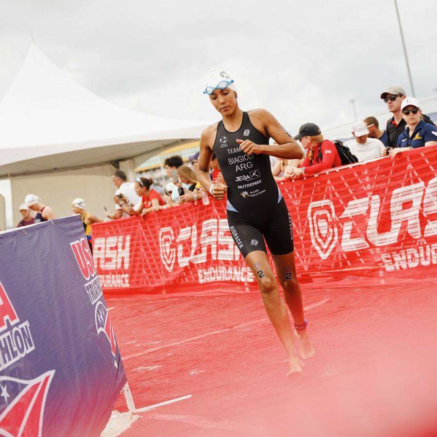 Me enamoré del triatlón cuando fui a competir por primera vez a La Paz-Entre Ríos,uno de los triatlones más legendarios, emblemáticos por así decirlo.En ese momento me enamoré de ver a los triatletas elite, fue la primera vez que competí y bueno tuve el placer de tener en frente referentes como Bárbara Riveros. Creo que ahí fue realmente cuando vi el profesionalismo de este deporte, yo quedé última pero bueno, ese fue mi inicio en la elite del triatlón.»